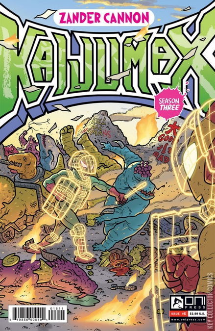 SEASON FINALE! All-Out Gang Attack has erupted in KAIJUMAX prison between the Cryptids and the old-school J-Kaiju and it’s every mon for himself amid flying claws, fire breath, and stomping action. Interspecies alliances are broken! Antediluvian lifespans come to an end! In the chaos, Mechazon and Electrogor put their risky plan to murder the crafty and sociopathic Zonn into action, but there’s just so much that can go wrong. Also: New evolved kaiju powers! Two long-awaited comeuppances! A bloodless squishing! And… a new pet for the Sharkmon?
