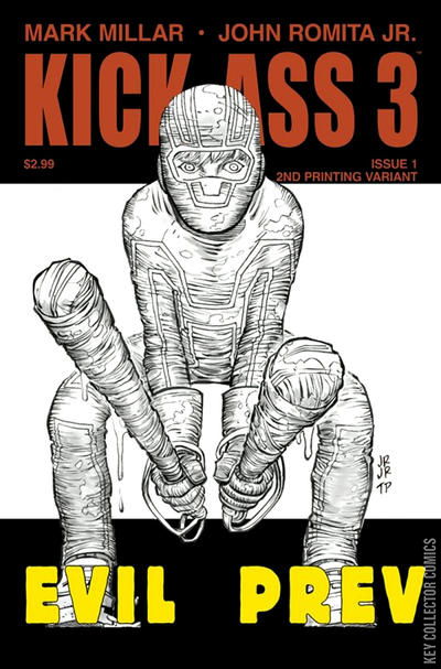 Kick-Ass and Hit-Girl's blockbuster return for the LAST EVER story arc of Mark Millar and John Romita Jr's mega-selling series. Hit-Girl's in jail, leaving Kick-Ass to lead the superhero team of Justice Forever. Their first mission: Bust Hit-Girl out of the clink. But superheroes have now been outlawed, leaving Kick-Ass to dodge both cops AND criminals. For the first time since donning the costume, Kick-Ass is beginning to have his doubts. Is he now in too deep to get out? The phenomenal follow-up to the Kick-Ass 2 movie coming this June. Issue #1 features six different covers by the industry's biggest artists, all available for order. Each cover will feature a different character, and when all six covers are linked, a special message will be revealed.