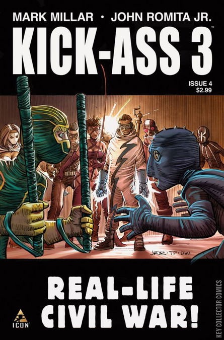 Dissension in the ranks! Kick-Ass has had it up to HERE with the newest (and laziest) member of Justice Forever. But when he finally takes a stand...will the rest of the team back him up? Also, the super-villain formerly known as Red Mist faces an education from the most terrifying crime boss in the Genovese family.