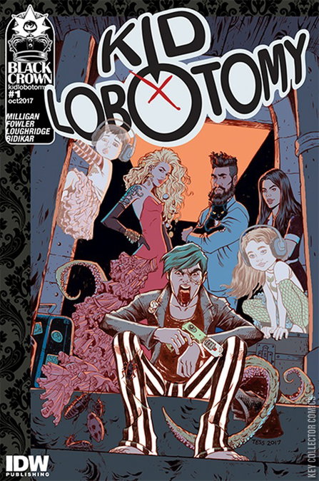 Kafka meets King Lear by way of Young Frankenstein in KID LOBOTOMY, a dark, demented, monthly satire that follows a dysfunctional family of hoteliers. Will sibling rivalry, seduction, and shapeshifting eventually lead to sanity or salvation? Big Daddy is a rich hotelier who, in a cracked echo of King Lear, appoints his youngest descendant to manage The Suites, a peculiar hotel located behind the Black Crown Pub. Affectionately known as Kid, his good looks and swagger can't hide a rough childhood of strange therapies and brain operations that have awakened inner demons and psychodramas. This of course makes him eminently qualified to perform lobotomies. A failed rockstar/successful madman gets one last change to prove his worth-and regain his sanity-by turning the hotel that was once his childhood sanctuary into a lucrative business, despite a host of obstacles-including his own sister-who would love nothing more than to see him fail miserably. Kid Lobotomy is co-created/written by Peter Milligan (Shade, the Changing Man, Brittania, Hellblazer) and illustrated by Tess Fowler (Rat Queens) with "A" covers by Fowler, a "B" cover by Rory Phillips, and a retailer incentive cover by comics superstar Frank Quitely (Jupiter's Legacy, We3) Grab your cockroach! Black Crown debuts here! Special 23 pages of story in the first issue! Letter columns, creator interviews, process pages & more! Previews for upcoming Black Crown series!