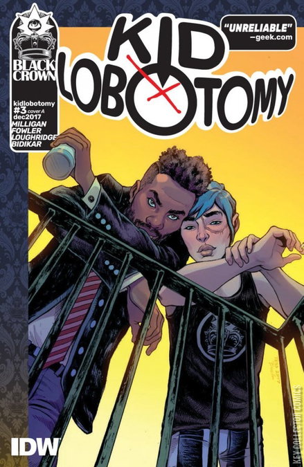 'Lost in Franz' Part 3 of A Lad Insane. Bury the past and it turns into monsters. Or in Kid Lobotomy's case, a disgusting cockroach man. As our troubled Kid flees deeper into the lower depths to escape his sister's arrival, he encounters more mystery and confusion. Bug-on-bug sex, spontaneous combustion and Franz Kafka are among the many dubious delights at 'The Suites,' America's Strangest Hotel. BLACK CROWN's inaugural hit series about a dysfunctional family of hoteliers continues! Letter column, interviews, behind-the-panel process pages & more!