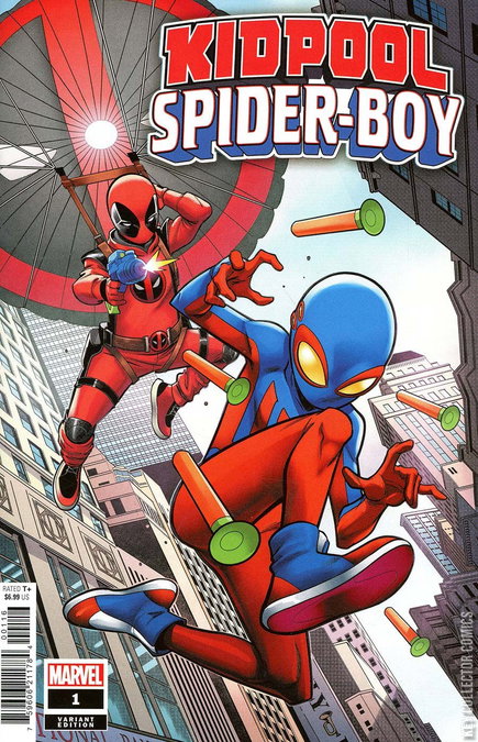 HISTORIC FIRST MEETING! Your favorite foul-mouthed adolescent, KIDPOOL, is back in comic book form starring alongside the biggest debut character in recent memory, SPIDER-BOY! Will the Adolescent-Arachnid be able to keep the Murderous Middle-Grader from causing the return of the Comics Code? UNLIKELY! But Bailey is going to try! Don't miss the comic that every kid and kid-at-heart in America is going to sneakily read under their sheets with a flashlight! RATED T+