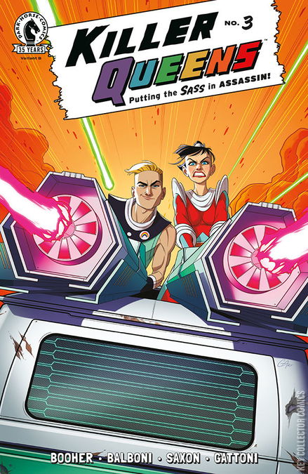 Our super-gay sass-assins have broken out of captivity with the help of some super cute new friends and a hot new ride. Teaming with rebels Haws and Ballik, the Killer Queens set out on a groovy adventure to escape the chaotic aftermath of their jailbreak! However, these new friends may not be what they seem-are Max and Alex in for the ride of their lives?