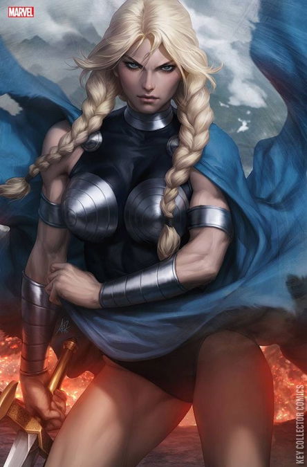 RETURN OF THE VALKYRIES, PART ONE Once there was an entire army of Valkyries, but now Jane Foster is the only one. When the King in Black comes to Midgard, Jane must rebuild the Valkyries to help stop him—starting with Hildegarde, a warrior from Asgard’s own hallowed halls, and X-Man Dani Moonstar, a former Valkyrie herself. But what Jane doesn’t know…is that she never was the only Valkyrie after all. Who is the fourth warrior? Jason Aaron and Torunn Grønbekk team up with artist Nina Vakueva for a story that will rock the foundations of the Marvel Universe! KING IN BLACK TIE-IN