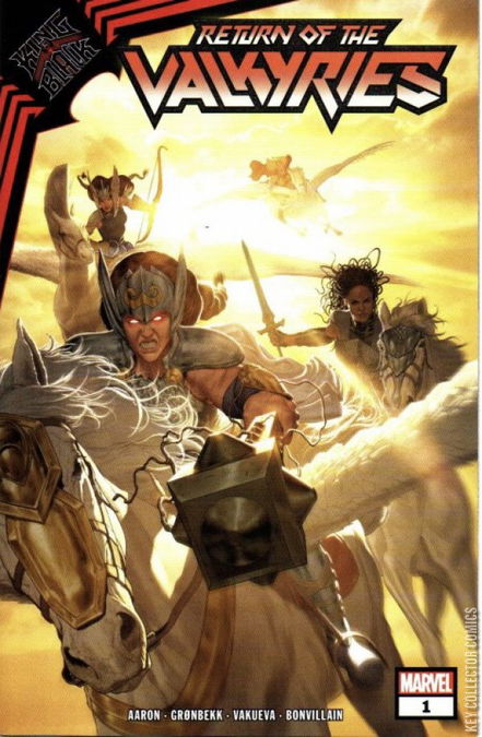 RETURN OF THE VALKYRIES, PART ONE Once there was an entire army of Valkyries, but now Jane Foster is the only one. When the King in Black comes to Midgard, Jane must rebuild the Valkyries to help stop him—starting with Hildegarde, a warrior from Asgard’s own hallowed halls, and X-Man Dani Moonstar, a former Valkyrie herself. But what Jane doesn’t know…is that she never was the only Valkyrie after all. Who is the fourth warrior? Jason Aaron and Torunn Grønbekk team up with artist Nina Vakueva for a story that will rock the foundations of the Marvel Universe! KING IN BLACK TIE-IN