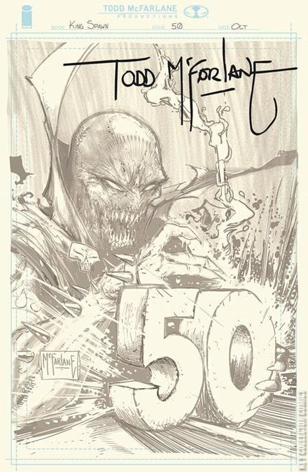 Four years ago, Todd McFarlane launched the first large-scale expansion of the Spawn Universe with King Spawn #1. Now we are here to celebrate the success of the expanded Spawn's Universe with King Spawn #50. An oversized issue with a story that will cross over into all three of the #50's coming out in the coming months. (King Spawn, Gunslinger Spawn, The Scorched). An ancient force, almost as old as time itself, has returned, and Spawn is in its sights. The story, sent into two chapters per issue, will be penciled by two of the Spawn Universe's best, Stephen Segovia and Carlo Barberi. This is the one you don't want to miss. Featuring covers by Todd McFarlane, Puppeteer Lee connecting cover), and Mark Spears.
