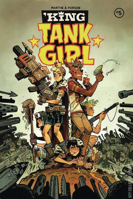 The final, ultimate, devastating issue of 'King Tank Girl, filled with needless slaughter, evil butchery, charred corpses, Dantesque chaos and carnage, fountains of spewing guts, and a lovely short story for very young children. 'King Tank Girl delivers everything you every wished for. Get some!