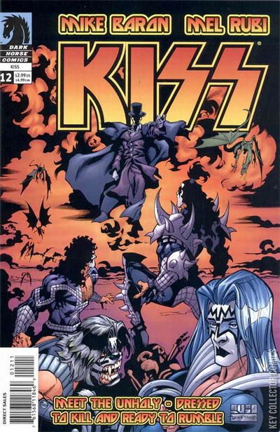 MIKE BARON/MEL RUBI/DEREK FRIDOLFS On sale August 20, FC, 32pg, (Rubi or photo cover), $2.99 While investigating a sudden surge in the Earth's monster population, the internally embattled Four Who Are One?along with their newest recruits, Christine 16 and Mr. Speed?are sucked into another, terrifying dimension. This horrifying, desolate world? as well as the monster crisis that's taken the Earth by storm?is clearly the work of the Unholy. Soon, our heroes' greatest fears are brought to life and inflicted upon each of them, rendering each one crippled with despair and self-loathing, while the Unholy's powers grow ever stronger. Can KISS make it out of this alive?and save the future of humanity in the process?or will their petty, human differences seal their ultimate fate? Cover price $2.99.
