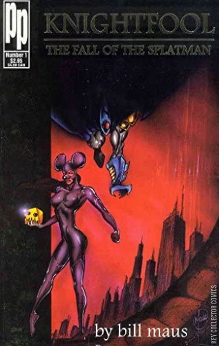 Story, art and cover by Bill Maus. Another superhero spoof by Parody Press, this one a parody of 1993s Knightfall storyline from the Batman books. Splatman throws out his back as the result of a collision between the Splatmobile and the doors to the Splatcave. As a result, he must keep his spine in a jar, and enlists the hyperactive Spazzreal to take his place defending the city, which he should have realized was a bad idea in the first place. 32 pages, B&W.