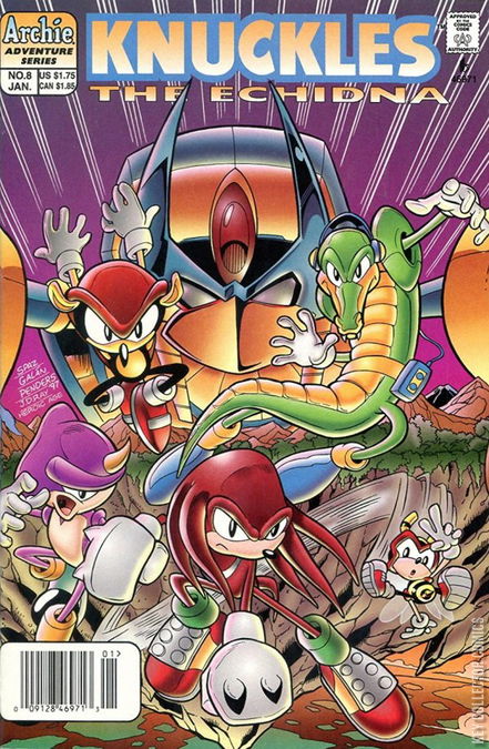 Knuckles the Echidna #8 is the eighth issue of the Knuckles the Echidna comic. This comic features one story: "The Gauntlet", the second part of the Dark Vengeance arc. Knuckles the Echidna reflects on the friends, family, and enemies he's recently gained while Enerjak spins him around near the surface of one of Mobius's moons. Enerjak promises that Knuckles will pay for what he and his forebearers have done and gloats about his limitless power. Knuckles reminds him that he was defeated in their last encounter. Enerjak teleports Knuckles to the depths of the ocean, hoping that he'll eventually understand that he is doomed and relent.