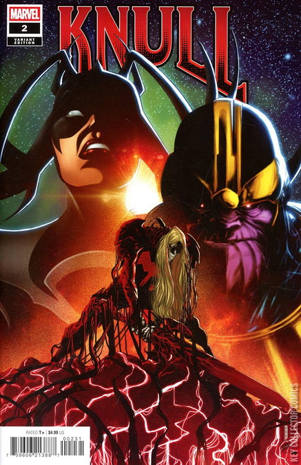 COLLISION COURSE! Free from his cage and on the run, Knull seeks out a mysterious golden prize from his own past to assist him in his quest to reclaim his crown as King in Black. Meanwhile, Hela continues to watch from magical shadows, secretly manipulating all the players on the board to play a wicked game of her choosing. Past and present collide on a cosmic scale on multiple fronts...with deadly ramifications for the future!
