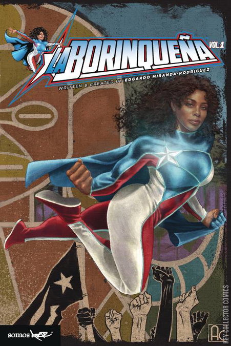 Marisol Rios De La Luz,a student at Columbia University with a major in Earth and Environmental science, is studying abroad in Puerto Rico. Shortly after arriving, she finds out that her classes at the University of Puerto Rico are no longer available due to budget cuts. Initially she is disappointed, but she decides to create her own lab in the back of her grandfather's caf� where she will conduct research on the rock samples that she acquires from her exploration of five caves. One night, she goes to Cueva Ventana during a storm and makes a shocking discovery about La Estrella Del Camino, which results in her receiving her powers from Atabex, Huracan, and Yucahu. As a superhero with a commitment to solving Puerto Rico's environmental issues, the people recognize her as their vigilante and La Borinque�a It is a hardcover book of volume one of La Borique�a. It includes issues #1, #1/2, #2,#3, La Borique�a Guest starring Rosario Dawson, Solo le interesa La Jaula (Ft. Iguaca), Somos Gigantes (ft. V-G1gante), Take back the night (ft. Luz La Luminosa), Tall� �nica (ft. Oro el Coqu� Dorado), �Que Bonita Bandera! it also includes a bunch of cover and pin up art from 50+ Artists. The original number one was published in 2016 but this book was published around November 2014 additionally, the barcode has a supplemental barcode next to it with the numbers 57499
