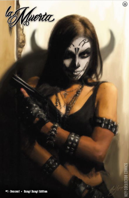 Present day. Maria Diaz, a US soldier, returns from Afghanistan to be reunited with her family on the Mexican holiday, Dia de los Muertos. But her brother has fallen in with The Zavalas, a death-worshipping crime cartel led by the nefarious Mama Z. When they see the family celebrating, they believe they've been ripped off by them. The entire family is murdered in cold blood. Maria wakes out of a coma Eight months later to find her family dead and gone. She seeks justice finds none: Daring the impossible, Maria decides to avenge her family and send the Zavala's to hell. Can one woman defeat an entire crime cartel and what will be the cost to her humanity? Standard cover by Mike Krome, Bones cover by Joel Gomez, Premium cover by Scott Lewis, and Naughty cover by Monte Moore.