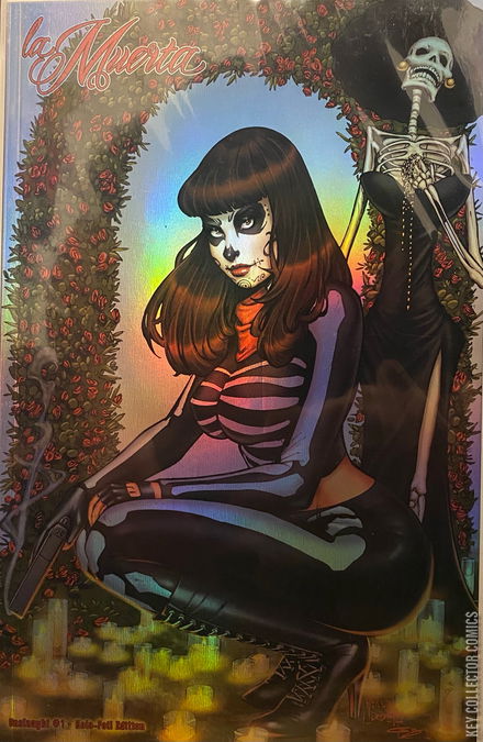"Deathocalypse," an official year long company wide event unfolds here! Maria Diaz stalks the streets as the relentless vigilante La Muerta, seeking vengeance against the criminal underworld. For a time, all was peaceful and quiet in her life - until tonight! Guest appearance by Lady Death!