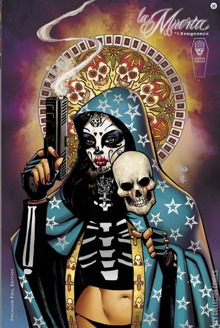 Having avenged her family's brutal murders, Maria Diaz thought she could hang up her guns forever. She thought wrong. Something is slaughtering helpless immigrants, including innocent children. Once more, Santa Muerte, the saint of death, calls upon Maria to be an instrument of vengeance. And again Maria heeds the call, donning the guise of La Muerta. In her relentless pursuit of justice, Maria violently confronts Brujo, a crime boss/warlock and his sexy sidekick assassin Sangre, "Loco," a kill-crazy Luchador vigilante, and an ancient, remorseless evil that makes her question her very existence. What terrible price will Maria pay for the sake of justice?