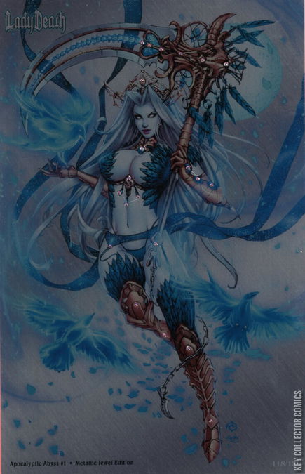 Lady Death: Apocalyptic Abyss builds on the mythology we created in Chaos Rules #1, Damnation Game #1, Extinction Express #1, Oblivion Kiss #1, Merciless Onslaught #1 & Unholy Ruin #1. It is the 7th chapter in Lady Death's new Coffin Comic's era! This is the 24-page edition, which includes part one of the complete story featured in the 48-page hardcover version.