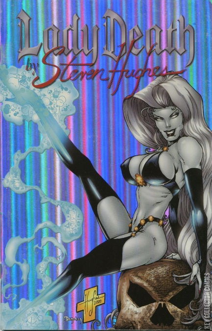 Standard edition. Steven Hughes returns to pour his heart and soul into twelve all new illustrations of the ravishing seductress of the netherworld, Lady Death. Featuring custom-designed costumes that will tantalize! Also included: twenty illustrations of Hughes's best and rarely seen Lady Death artwork! Featuring thirty-one breathtaking images, it's Steven Hughes triumphant return! Premium Edition Holographic Cover limited to 3000 copies.