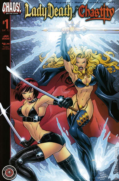 Written by fan favorite Brian Augustyn (Out There)! One has a serious demeanor. The other is happy go-lucky. Lady Death and Chastity... together for the very first time ever! What happens when two unlikely heroines join forces? Will they butt heads or will they get along? New York City will never be the same after these two beauties of Chaos! join forces and cause havoc in the streets. If that's not enough to boggle your senses?? What ghostly, supernatural entity could they possibly be up against? Tune in and find out Chaos! fans because the most exciting inter-Chaos! crossover opens the doors to these questions and more! Expect the unexpected!
