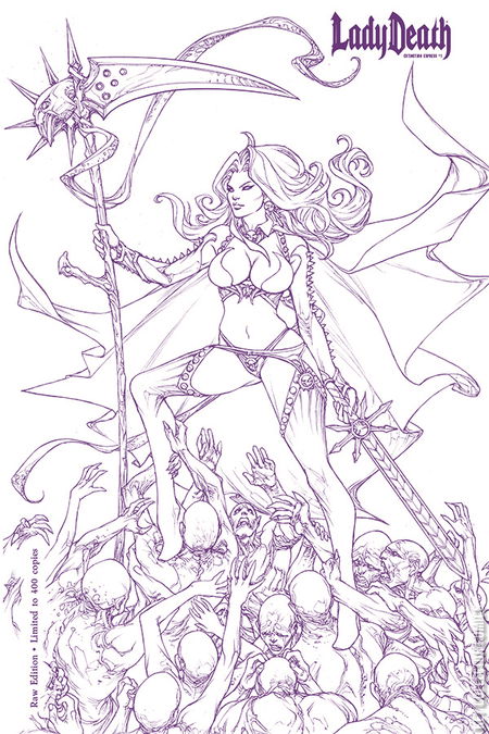 The Hellbourne Elders dispatch Atrocitas, an insane angel/demon hybrid assassin to destroy Lady Death for once and for all. But their epic confrontation proves tragic for a beloved character and sets in motion events that will change Lady Death's undead life forever! Is this the road to extinction? Featuring the diabolical return of Hellwitch and the first appearance of Chaotica, a major new character in the Lady Death Universe.
