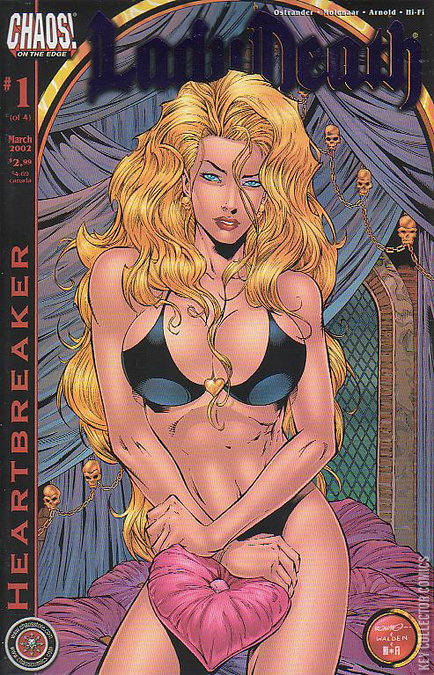 Broken hearts.... Bloody revenge! This self-contained one-shot fits in Lady Death continuity and is a great starting point for new readers. He's small, he's round, and he shoots arrows into your heart. Cupid, right? Wrong! This is the opposite of Eros ?? Sore ?? and he's the Cherub of Hate! Every black arrow fans all the little resentment, petty jealousies, and minor grievances you feel to infernos of murderous hate. So what happens with one of the arrows hits Lady Death? Wait until you see! Lady Death: Heartbreaker gets just plain nasty