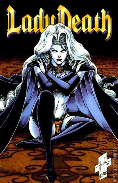 Kali is the ruler of the Cremation Grounds, a realm of Hindu gods and she senses the impending approach of Lady Death as the herald of the Judgement Era. She start to devour her very willing followersTransported again Lady Death arrives in the cremation grounds and is set upon by Kai's winged servants who try to net her. This time she is more powerful when she arrives and defeats the winged messengers, one of whom flies back and tells Kali of her arrival.Inside the Trinity temple Lady Death witnesses the other gods discussing Kali's eating of her followers and decide that she is doing what she was created to do. Kali finds her in the temple and touches her shoulder Lady Death takes exception to being touched and against the instructions of the other gods Kali draws her swords and attacks.Kali accidentally slays one of the other gods in her frenzy but reveals that judgement is coming to all the realms. The other gods discuss her as the pair battle. They come to the conclusion that Kali is out of control and send a flood to cleanse her. The Flood sweeps her into the abyss.Vandala watches over the mess and wonders if she has made the right choice in forcing Lady Death's hand who now declares she has learned nothing and that all her efforts are still purely self serving. Vandala is dismayed even if she has given Lady Death back her fighting spirit, but none of the nobility or insight. Only for her to shout that she just wants peace and renounces the warrior in her.She decides enough is enough and starts the spell to bring Lady Death back to the void to talk with her directly when Asteroth appears, he tracked her down as the one hiding his target from him.Lady Death tumbles through the realms the spell drawing her to the void broken she falls until she appears in a beautiful medieval world and she utters one word. Peace.