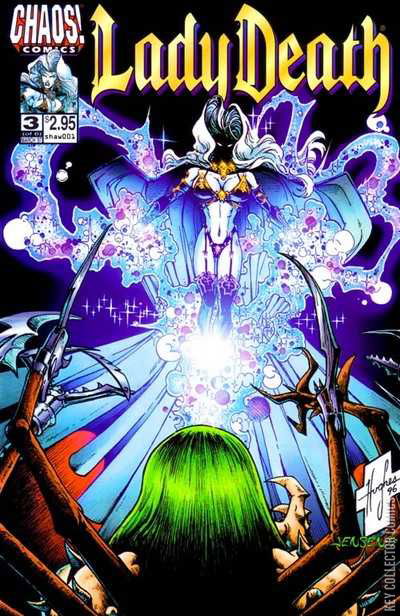 Scorpia leads the battle directly to the gates of Asgard, mustering the forces of genocide at the gates.Lady Death rises and talks to Grimm, asking his name and finds out he is a thief but with noble aspirations when it comes to Asgard. With the noise of the siege rising she heads for Vandala where Frigga tells her that she needs to go to Nifheim and inform the Death Goddess Hel what is happening. Skoll appears out of thin air, a skull faced trapper who knows the hills better than any and vouched for by Grim, offering to take her there on his dragon.Lady Death argues against leaving when she can effectively lead the troops in battle but agrees to the quest. Vulnavia watches the skies as Skoll's dragon passes over head and sees who rides it. Skoll opens a gateway with the chaos symbol and they arrive in Nifhelm almost instantly, a 9 day journey otherwise.They arrive and find Hel dead. Lady Death questions Skoll how he knows so much and has such powers. He tells her his name is Bedlam and he is a Hopi Indian. When he was younger he tried to undo a great injustice by raising the chaos crest but released 8 families of evil. He travels time and space tracking them down to re-imprison them in the talisman. It seems the talisman was stolen by Genocide during his years of thievery and Bedlam is there to get it back. Lady Death summons Darkness and casting it into a graveyard and raises an army of undead soldiers.On Wrathworld Vex is in mourning as she is imprisoned for her failures. At Genocide's Hammers the Scarboil clan, the mischievous creatures that raided the endless graveyard in The Crucible 1/2, are installing an object. The Chaos Talisman is installed at the apex of all 8 towers and crackles with energy. Genocide tells them the idea came to him when he read Lady Death's mind all those years ago and that Asgard is the key to its success.At Asgard the tide is turning against the city and they are beaten back. Tyr shoves Thrall in despiration and escapes a charge with...