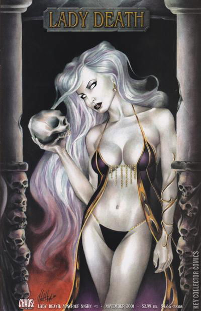 Experience Mischief Night through the eyes of Lady Death! Mischief Night is an event that tells the story of the night before Halloween ? a one-shot filled with the gothic overtones, horror, and suspense that only Chaos! can provide! What unspeakable horrors will Lady Death face? Chaos! is tight-lipped, but it's a haunting tale you must read to believe... if you dare!