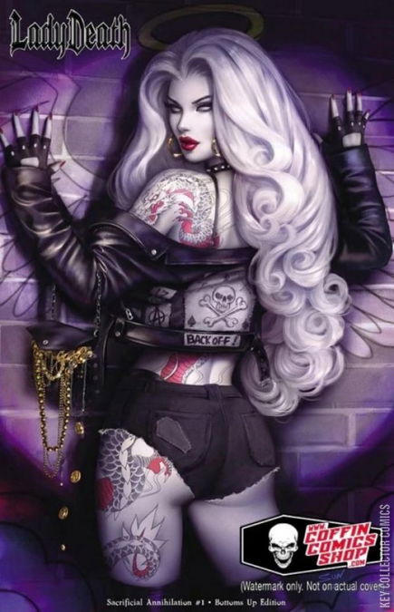 Deathocalypse , an official year-long company-wide event unfolds here! Heroes have fallen. Cities lay under siege. And swarms of progeny fill the skies, blotting out the sun. It seems no one can stand against the awesome power of Insurrectus. Bred to destroy worlds, the ruthless tyrant now sets his sights beyond Earth, commanding vicious hordes to invade every corner of the Infinityverse. Humanity's only hope lies in Hell's most fearsome warrior witch - Lady Death! There can be only two outcomes for our deadly diva: victory or total Deathocalypse!