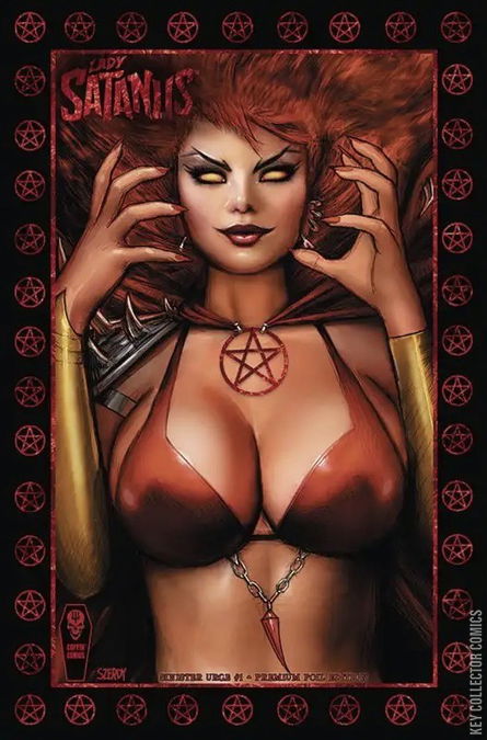 Chapter 1 of Lady Satanus's story. 48 pages of story & art! Expelled from Hell, Lady Satanus, the devil's half-human daughter, finds herself powerless and alone on the mean streets of New York City during the summer of 1977, targeted for death by every demon criminal in the city. Against all odds, she dares the impossible: to conquer the untouchable Lucian and Drusilla Sargatanus, powerful demon crime lords who have an iron grip on the city's underworld, and to crown herself New York City's crime boss. The only thing in her way? Absolutely everyone and everything. This premium edition, limited to quantities ordered, features intricate, cutting edge foil enhancements!
