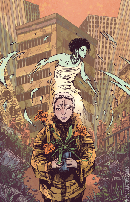 It is said that when the world dies, the spirits of the first people will return to witness the last days of humanity. Well, the spirits have arrived, and the end is here. But not everyone has given up hope. Naledi, a teenage girl living in the deserted city once called Johannesburg, has always believed that there is a land, hidden away in time where the gods still live. And where there are gods, there are miracles. Perhaps even miracles that are big enough to save our dying planet. And so, after a lifetime of isolation, Naledi will head out into the unknown with little to hold onto but her faith - and her magical pet plant, Buyo. A fairy tale for the times in which we find ourselves, brought to life by South African writer and producer Isaac Mogajane (Matwetwe, Catching Feelings) and Brazilian artist Santtos (Night Shift), LAND OF THE LIVING GODS will introduce you to a world of wonder and cruelty, beauty and perseverance - and will leave you profoundly changed.