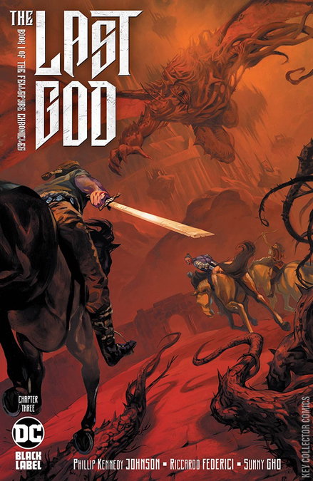 Beyond the edge of creation lies the Black Stair. And beyond it, amidst the void, he waits. Mol Uhltep, The Last God. This is the tale of those who claimed to slay him, and the world they doomed with their lies. In the third chapter of DC's dark fantasy epic The Last God, Queen Cyanthe and her unlikely companions make their way across the land of Cain Anuun toward the Pinnacle-city stronghold of the Guild Eldritch, a powerful order of sorcerers led by Skol, another fabled member of the original fellowship of Godslayers. There they hope to find protection from the looming forces of Mol Uhltep and his inhuman servant, King Tyr. In the past, we see young Tyr, Cyanthe, and Veikko Al Mun make their way toward a similar destination, while they uncover more secrets of the Last God's plan and make an unlikely ally.