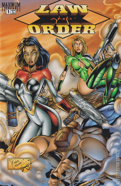 Cover pencils by Fabio Laguna, inks by Danny Miki. Untitled story, script by Marat Mychaels (Plot) and Chris Goffard (Script), pencils by Marat Mychaels (Layouts) and Fabio Laguna (Penciller), inks by Norm Rapmund; Retelling of the Origin of both Law and Order; Law was an assassin on another planet.