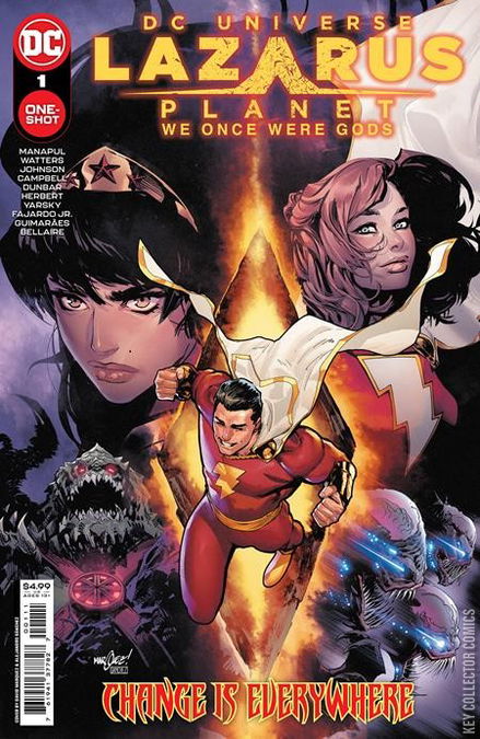 Written by Francis Manapul, Dan Watters, Philip Kennedy Johnson, and Josie Campbell. Art by Francis Manapul, Max Dunbar, Jack Herbert, and Caitlin Yarsky. As the Lazarus rain beats down upon planet Earth, human beings are only a fraction of those affected by this transformative upheaval--enter: We Once Were Gods. This series of vignettes explores Lazarus Planet's effects across the many extraordinary locations and creatures in the DC Universe, and like their human counterparts, these beings are in for some big changes. Can Themyscira survive the resurrection of every invading army that ever graced its shores? Will Martian Manhunter survive a psychic link to a Doomsday nest? What happens when the monsters from the Trench gain the ability to breathe air? And look out, Shazam Family...the Rock of Eternity is about to get rocked.