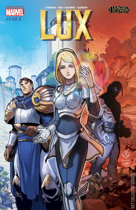 FIRST IN A NEW SERIES THAT EXPLORES AND EXPANDS UPON THE FAN FAVORITE LEAGUE OF LEGENDS LORE! Demacia is a peaceful utopia where order reigns. Maintaining that order at any cost are the Mageseekers, who hunt down anyone utilizing forbidden magic. Hailing from a respected noble family, LUXANNA “LUX” CROWNGUARD is destined for a life of privilege—but is hiding a terrible secret. As her own magical light powers emerge, Lux must decide whether she stands with brother GAREN and the ruling class of Demacia…or the downtrodden Mages at the fringes of society. Written by Riot Games’ John O’Bryan, and illustrated by Billy Tan, Haining, and Gadson of Tan Comics, LUX #1 is all-new adventure exploring another facet Riot Games’ LEAGUE OF LEGENDS lore in the Mighty Marvel Manner!