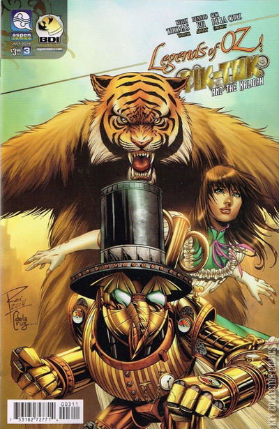 Tik Tok is forced to resort to one-man-army-mode as the pair confront the forces at odds with their survival-including secrets from the past that could threaten their future! The conclusion to this Spring's fun, new spin-off, fresh from the pages of BDI's hit Legend of OZ: The Wicked West series! Featuring an all original story, Aspen's newest BDI launch title concludes with the LEGENDS OF OZ: TIK TOK AND THE KALIDAH #3!
