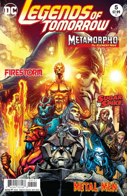 METAMORPHO Written by AARON LOPRESTI Art by AARON LOPRESTI and JONATHAN GLAPION Metamorpho and the people of Dagon Ra have finally obtained the Orb of Ra just in time for Kanjar Ro and his space pirates to arrive to take it. Will Metamorpho be able to defend the people of Dagon Ra and the Orb from Kanjar Ro’s wrath, or will they succumb to it? FIRESTORM Written by GERRY CONWAY Art by EDUARDO PANSICA and ROB HUNTER Multiple Multiplexes! As the Quantum Field generator begins collapsing our reality and strengthening Multiplex duplication, Multiplex is unsure which version of himself manifests the real Danton Black. We’ll need Professor Stein, Ronnie and Jason to team up as Firestorm for this one! SUGAR & SPIKE Written by KEITH GIFFEN Art by BILQUIS EVELY Sugar & Spike’s lives weren’t always so full of sleazy super-heroic stake-outs. Discover the case that started it all and endeared our heroes to the superhero community—it’s the secret origin of Sugar & Spike! METAL MEN Written by LEN WEIN Art by YILDIRAY CINAR and TREVOR SCOTT The government has unleashed its ultimate plan to get the Metal Men back—a twisted team of Metal Men bent on bringing our heroes in. Meanwhile, a looming threat waits in the shadows.
