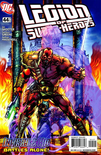 On planet Velmar V, the invincible Ikilles has already trashed Timber Wolf and Shadow Lass. Now, the Legion's last hope is — Invisible Kid?! Meanwhile, while the rest of the weary, wounded Rimbor Team fights an army of heavily armed Science Police, Atom Girl squares off against the vicious Commodore. And on Earth the mysterious M'Rissey awes everyone with his unexpected power!