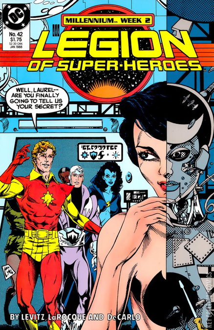 Millennium tie in. Note: Hal Jordan and Guardians of the Universe cameos.Laurel Kent, a former student of the Legion Academy who claims to be the descendant of Superman, reveals that she is actually a Manhunter robot. She tries to destroy the Legion of Super-Heroes, her former allies.