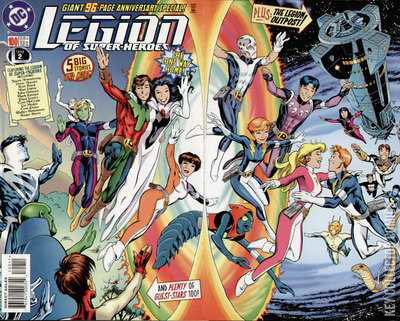 Continued from Action Comics #741 OK C.O.M.P.U.T.O. The Legionnaires are aided by Superman, Green Lantern Kyle Rayner, Martian Manhunter, Robin, Impulse, and Superboy in their battle with C.O.M.P.U.T.O. REFLECTIONS Ferro recounts his first official mission as a Legionnaire. ALL TOGETHER NOW! BRAINIAC ADVENTURES THE FIRES OF CREATION LEGION OUTPOST