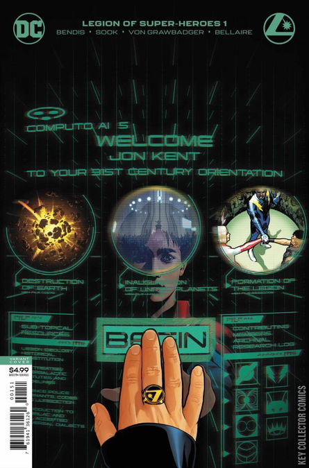 Welcome to the 31st century! Inspired by the acts of and lessons learned from the greatest heroes of all time, the Legion of Super-Heroes have gathered together to stop a galaxy from repeating its past mistakes. The greatest lineup of heroes in comic book history returns with new, fresh, and reader-friendly stories! Eisner Award-winning writer Brian Michael Bendis reteams with master artist Ryan Sook ( ACTION COMICS ) for one of the most ambitious mainstream comic books ever created! Why have the Legion of Super-Heroes broken the cardinal rule of the United Planets and inducted Jon Kent, a.k.a. Superboy, into the Legion? What are they hiding? And what does it have to do with Aquaman’s long-lost trident?