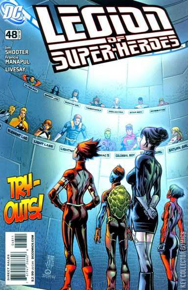 Legion membership tryouts! Meet Night Girl, Gazelle, Sizzle and Turtle! They're four candidates with awesome abilities who attempt to prove their mettle and join the greatest super-team of the 31st century. Meanwhile, alien spies gather intelligence about United Planets defenses and assassinate a United Planets government leader!