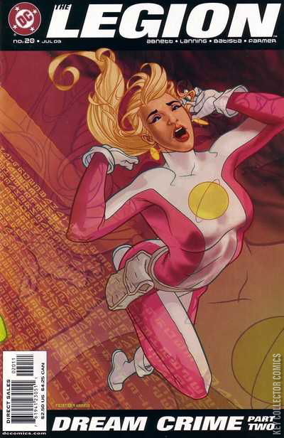 The 5-part "Dream Crime" storyline heats up! Saturn Girl awakens from the events of last issue to find that her life has been a hoax. The Legion still is lost in the Kwai galaxy, Live Wire still is alive, and the team still is trying desperately to save Element Lad! Saturn Girl must figure out why someone has gone to the trouble of making these last few months seem so real.Saturn Girl is under the thrall of the hypnotism power of Universo.