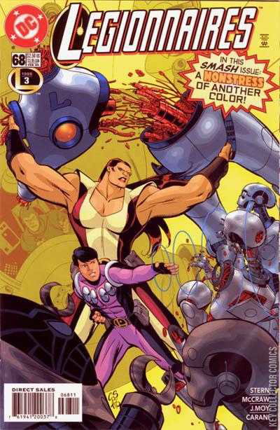Xotar the Conquerer materializes in the robotics section of the Time Institute of the 30th century, quickly dispatching the antique machines to do his bidding. Cosmic Boy intercepts them and calls in for back-up. Meanwhile, Monstress and Kid Quantum II are trying to enjoy a nice day of shopping when Monstress' skin color begins to rapidly change without warning. A colorful Monstress joins her fellow Legionnaires in taking down Xotar's forces.