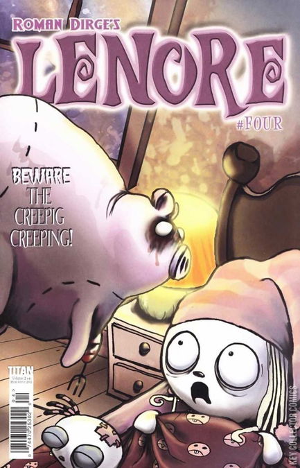 'Beware the Creepig Creeping, it gets you while you're sleeping!' Lenore eats a bacon-wrapped hot dog after midnight to find a pork chop telling her she has seven days left. After that, Creepig arrives to devour her whole!