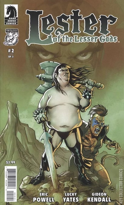 Writers Eric Powell (The Goon) and comedian and voice actor Lucky Yates (TV's Archer) team with Eisner Award-winning artist Gideon Kendall (Megaghost, Marley's Ghost) for the second installment of the twisted comedic groin tap that is, Lester of the Lesser Gods. This episode� SIDE QUEST! Lester and his battle companion, Kathy Stroyer, are pulled away from their assault on the empire of Will Frye the Technomancer Guy to raid a mountain fortress where their automaton pal, Duck Bot, is held captive.