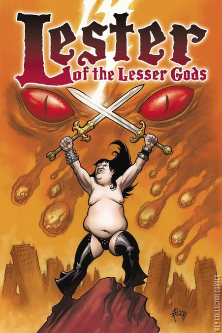 From Eric Powell (The Goon), Lucky Yates (Comedian and voice of Dr. Krieger from Archer), Mac Cushing (Spook House) and Eisner Award-winning artist Gideon Kendall (Megaghost) comes Lester of the Lesser Gods! Lester has no friends and no life. That is until Satan unleashes the Apocalypse! No longer is he a 32-year-old, 300 pound LARPer who lives with his mother. A mother who constantly re-minds him of his lowly conception in a biker bar bathroom. But momma didn't get that gimpy hip from knocking boots with any old biker... t'was a GOD! And Satan shall suckle his knuckle! HUZZAH! And for the hardcore collector... Special Edition cardstock cover by Gideon Kendall!