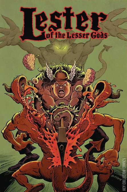From Eric Powell (The Goon), Lucky Yates (Comedian and voice of Dr. Krieger from Archer), Mac Cushing (Spook House) and Eisner Award-winning artist Gideon Kendall (Megaghost) comes Lester of the Lesser Gods! Lester has no friends and no life. That is until Satan unleashes the Apocalypse! No longer is he a 32-year-old, 300 pound LARPer who lives with his mother. A mother who constantly re-minds him of his lowly conception in a biker bar bathroom. But momma didn't get that gimpy hip from knocking boots with any old biker... t'was a GOD! And Satan shall suckle his knuckle! HUZZAH! And for the hardcore collector... Special Edition cardstock cover by Gideon Kendall!