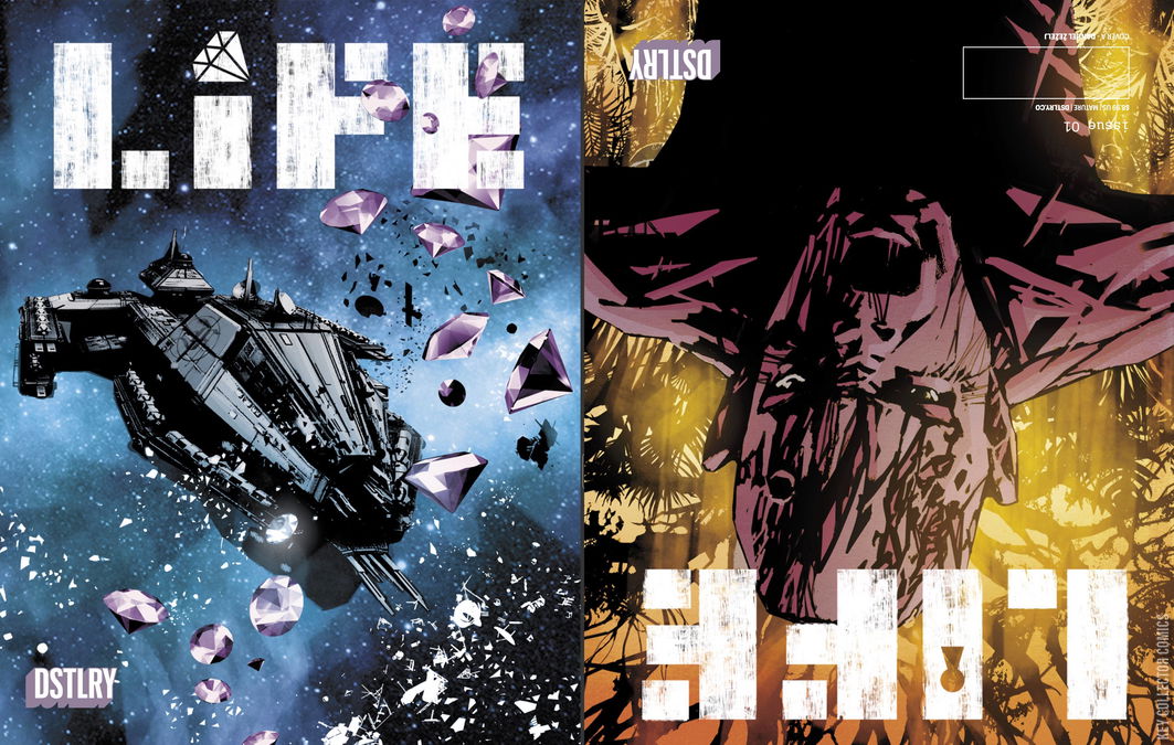 NEW 56 PAGE SERIES DEBUT. Brian Azzarello (THE BLOOD BROTHERS MOTHER, 100 Bullets) and Stephanie Phillips writing together for the first time (Grim, Harley Quinn) team up with artist Danijel Zezelj (Nostalgia) and colorist Lee Loughridge (Deadly Class) to create a masterfully crafted flip book, housing two enthralling narratives that collide in unexpected ways. In the future, a death penalty will be considered an act of kindness, as covert experiments have forced criminals with multiple life sentences to live all their time to full term. For the “Casanova Killer,” that means living out the nearly 2,400 years of his 32 life sentences mining on a distant prison planet alongside some of humanity’s most heinous offenders. Years pass… Decades turn to centuries, abandoned, the prisoners are shocked to see a ship approaching—filled with thieves hoping that their next big score is on the planet’s long dead mine. They have no idea that the prisoners—are still alive. While the prisoners scheme to find a way off planet, the thieves plan the biggest score of their careers. Each issue of "LIFE” is a flip book, housing one story from two different perspectives. A prison break and a heist both offer interlocking narratives, creating an immersive experience that will challenge your perceptions of justice while begging the immortal question: Who really wants to live forever? For fans of ALIENS, OCEAN’S ELEVEN, GUARDIANS OF THE GALAXY.