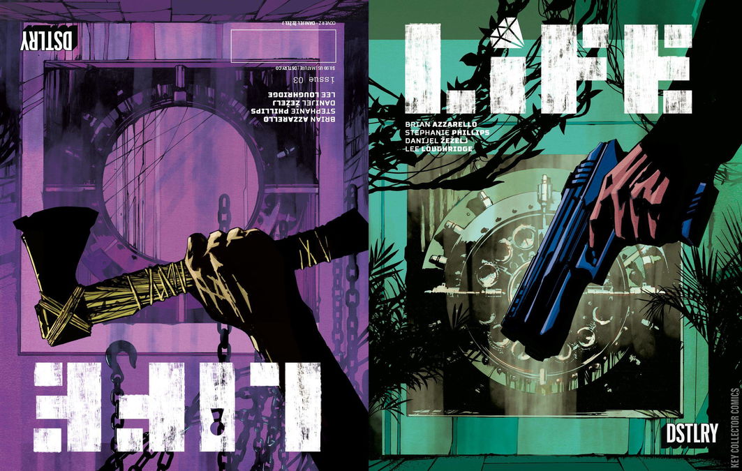 THE HIT SCI-FI series from DSTLRY continues! Writers Brian Azzarello (THE BLOOD BROTHERS MOTHER, 100 Bullets) and Stephanie Phillips (Grim, Harley Quinn) team up with artist Danijel Zezelj (Nostalgia) & colorist Lee Loughridge (Deadly Class) to create a masterfully crafted flip book, housing two enthralling stories in one! With Bobby in stasis after taking a virus-laden axe to the chest, it's up to Jax and the rest of the crew to soldier on with the diamond heist. Meanwhile, the monstrous residents of this prison planet fight amongst themselves about whether to make nice or make war with the thieving invaders. And with traitors in ALL the camps, things are going from bad to worse in a hurry! Each issue of LIFE is a flip book, housing one story from two different points of view. A prison break and a heist both offer interlocking narratives, creating an immersive experience that will challenge your perceptions of justice while begging the immortal question, 'Who really wants to live forever?' Every single issue from DSTLRY is presented in our perfect bound Prestige format, featuring wraparound covers with spot gloss on robust cover stock, complemented by 48 pages of exquisite interior stock. It's the DSTLRY difference. For fans of ALIENS, OCEAN'S ELEVEN, GUARDIANS OF THE GALAXY.