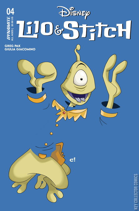 CAUTION - STITCH CROSSING AHEAD! Stitch's impromptu around-the-world tour kicks into high gear as the relentless Cluster Sovereign and their robot enforcers redouble their efforts to retrieve the elusive Experiment 626! Amplifying the antics from author GREG PAK and artist GIULIA GIACOMINO in this issue are appropriately audacious covers from NICOLETTA BALDARI, TRISH FORSTNER, EDWIN GALMON, and CRAIG ROUSSEAU!